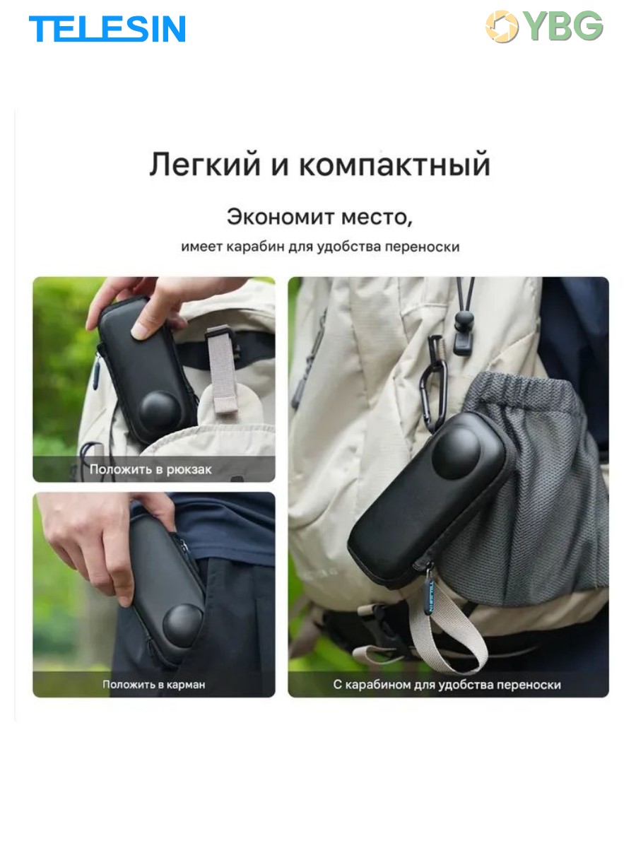 ОписаниеПрочный и компактный чехол TELESIN S6-PRC-03-TIS для Insta360 X4 — идеальная защита для камеры и аксессуаров