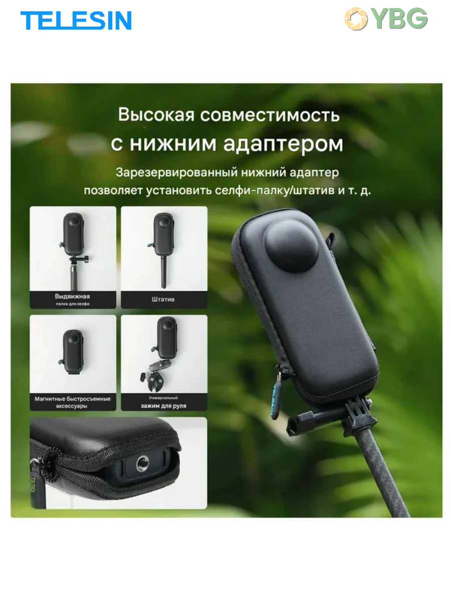 Специально разработанный для камеры Insta360 X4, чехол TELESIN представляет собой надёжное и портативное решение для хранения и транспортировки вашей техники. Внешняя оболочка выполнена из ударопрочного материала, защищающего от падений и царапин, а внутренняя часть обшита мягкой тканью, которая бережно фиксирует устройство и аксессуары