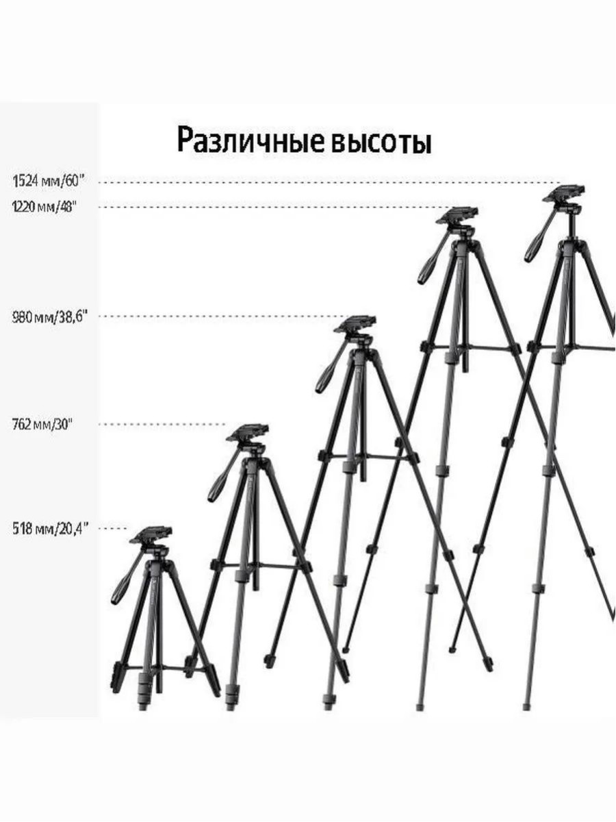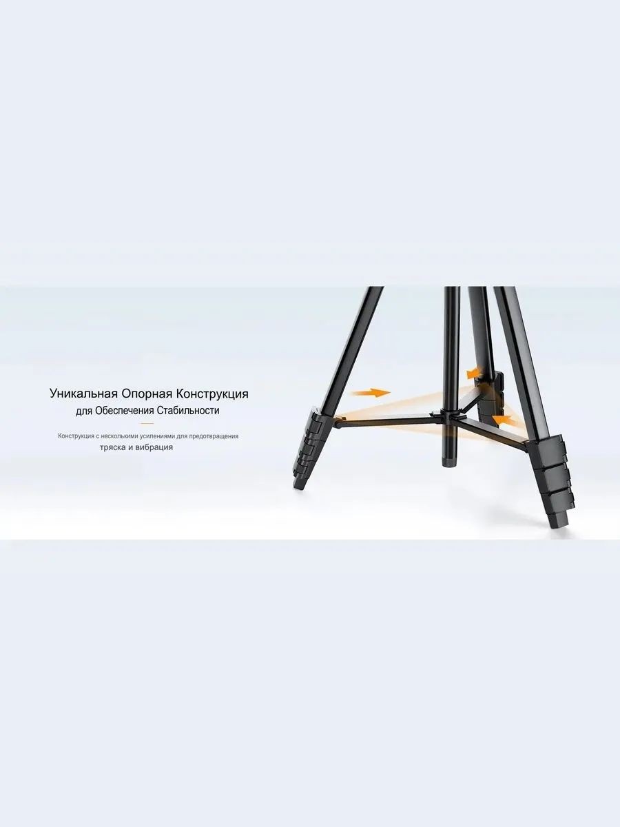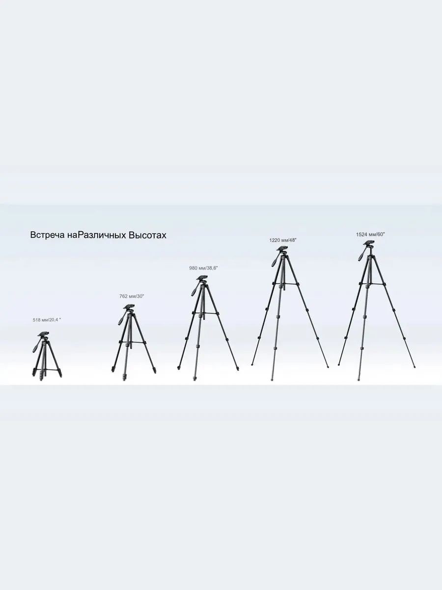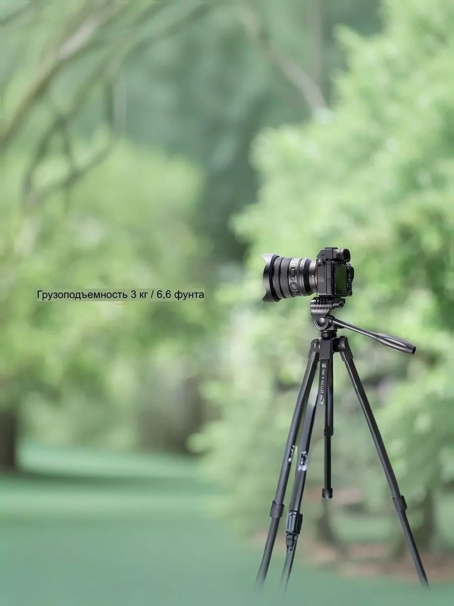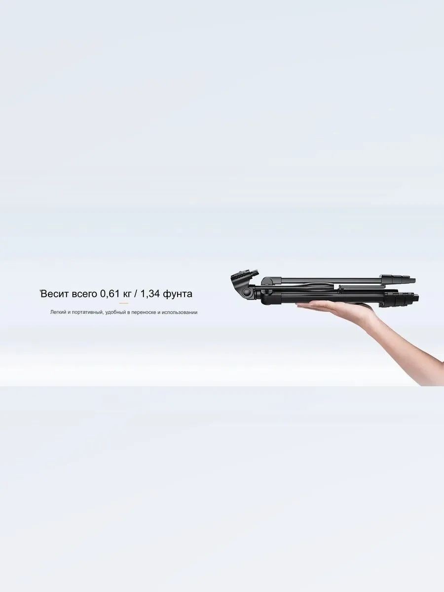 ✅ Удобство и контроль: Встроенный пузырьковый уровень помогает выставлять штатив строго горизонтально. В сложенном виде длина составляет всего 43 см, а вес — 0.59 кг.