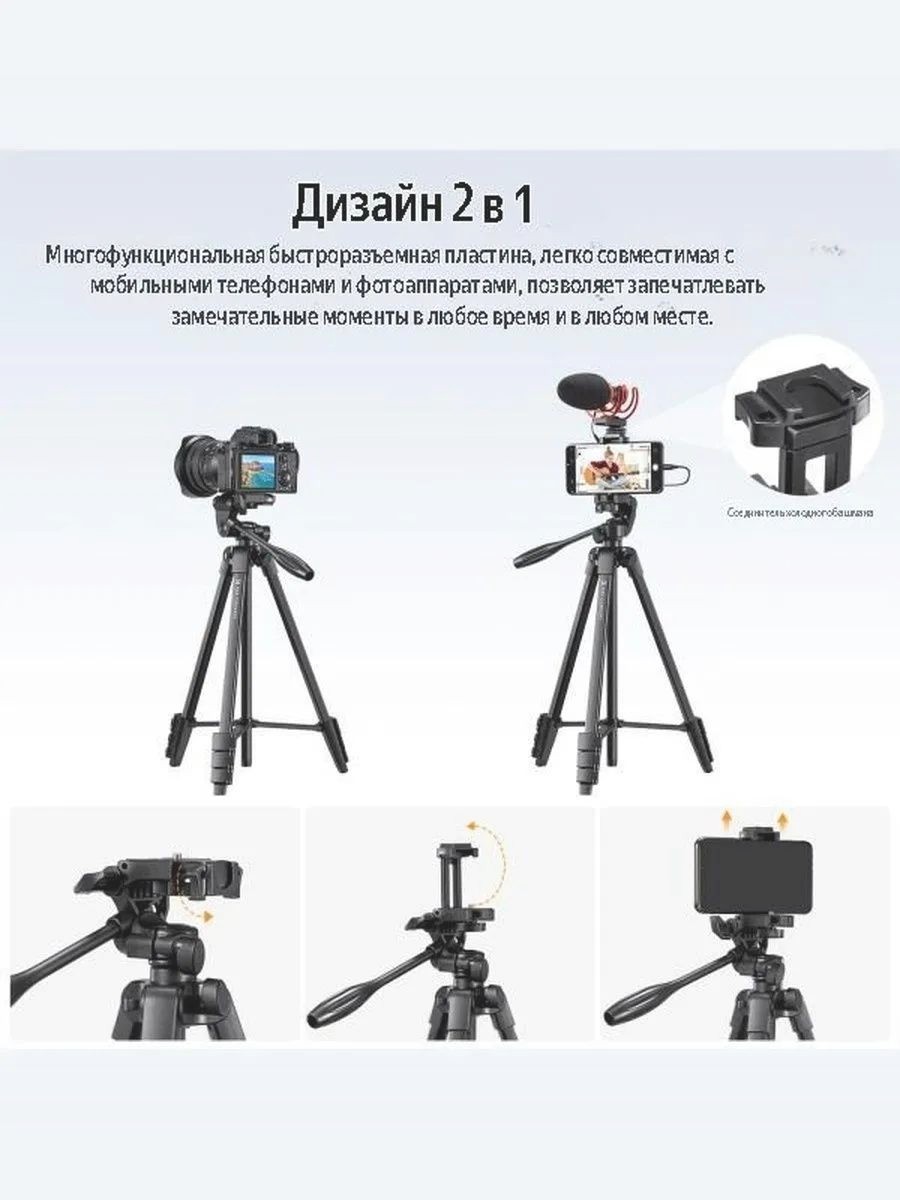✅ 3-в-1: штатив, монопод и селфи-палка: Компактная конструкция легко превращается из полноценного штатива в удобный монопод для динамичных ракурсов.