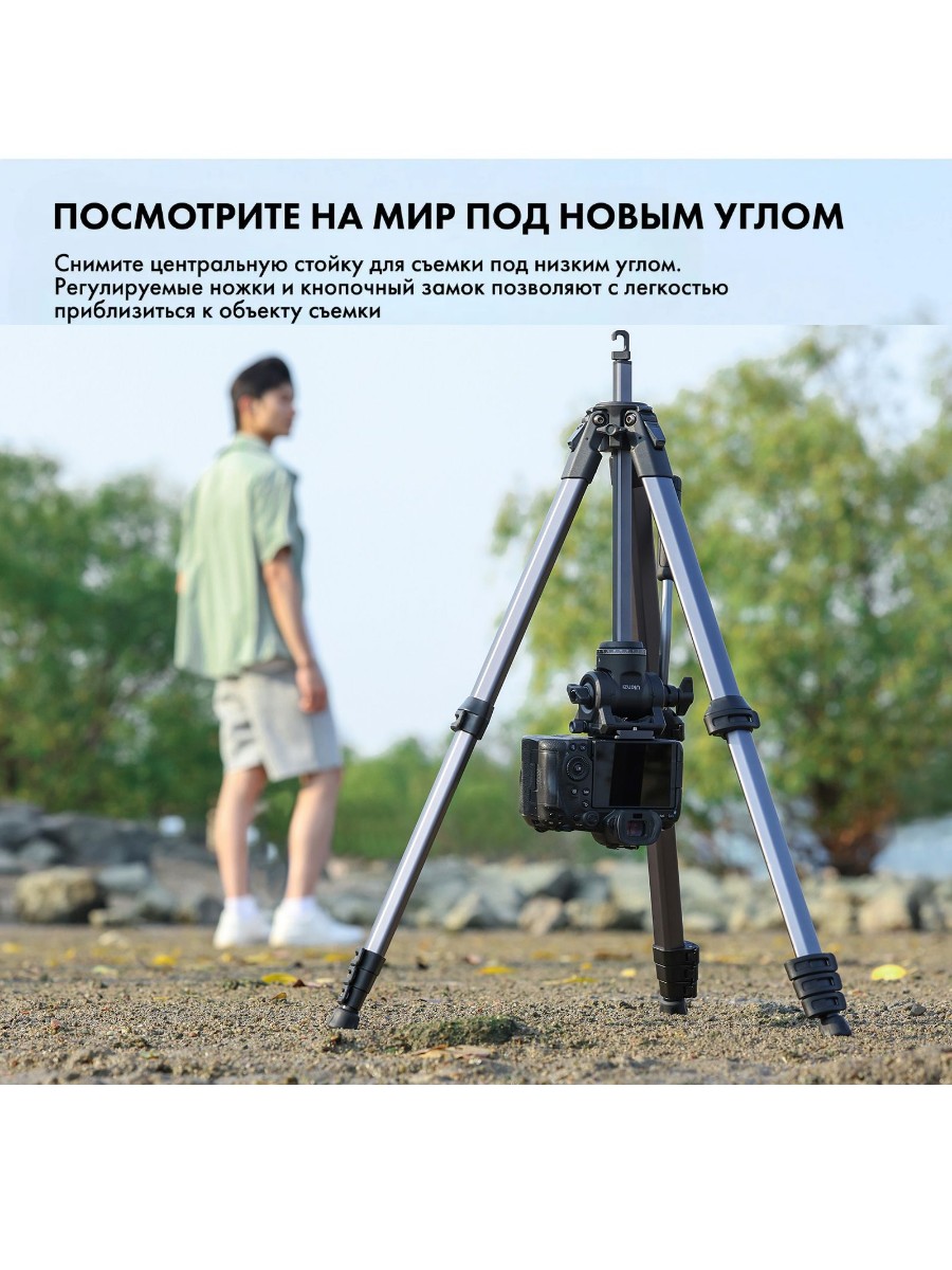 Благодаря складной длине всего 49 см и весу около 1.3 кг штатив легко помещается в рюкзак или сумку для ноутбука. Конструкция из алюминиевого сплава обеспечивает легкость без потери жесткости .